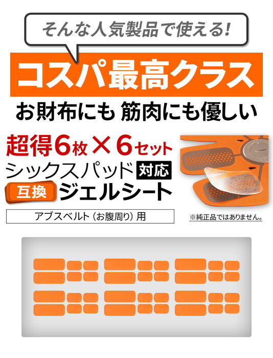 【6SET 36枚入り】 シックスパッド アブズベルト にも対応 互換 高電導 ジェルシート ジェル 採用 計36枚 SIXPAD Abs Belt EMS ジェルパッド