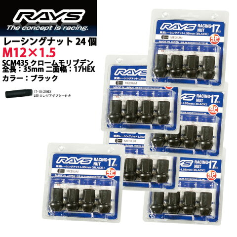 【RAYSナット】20個入り■100系ハイエース(5穴車)/トヨタ■M12×P1.5/黒・ブラック/ミディアムタイプ全長35mm【小径17HEX】クロムモリブデン製ホイールナット【RAYS_17H35rn_15】