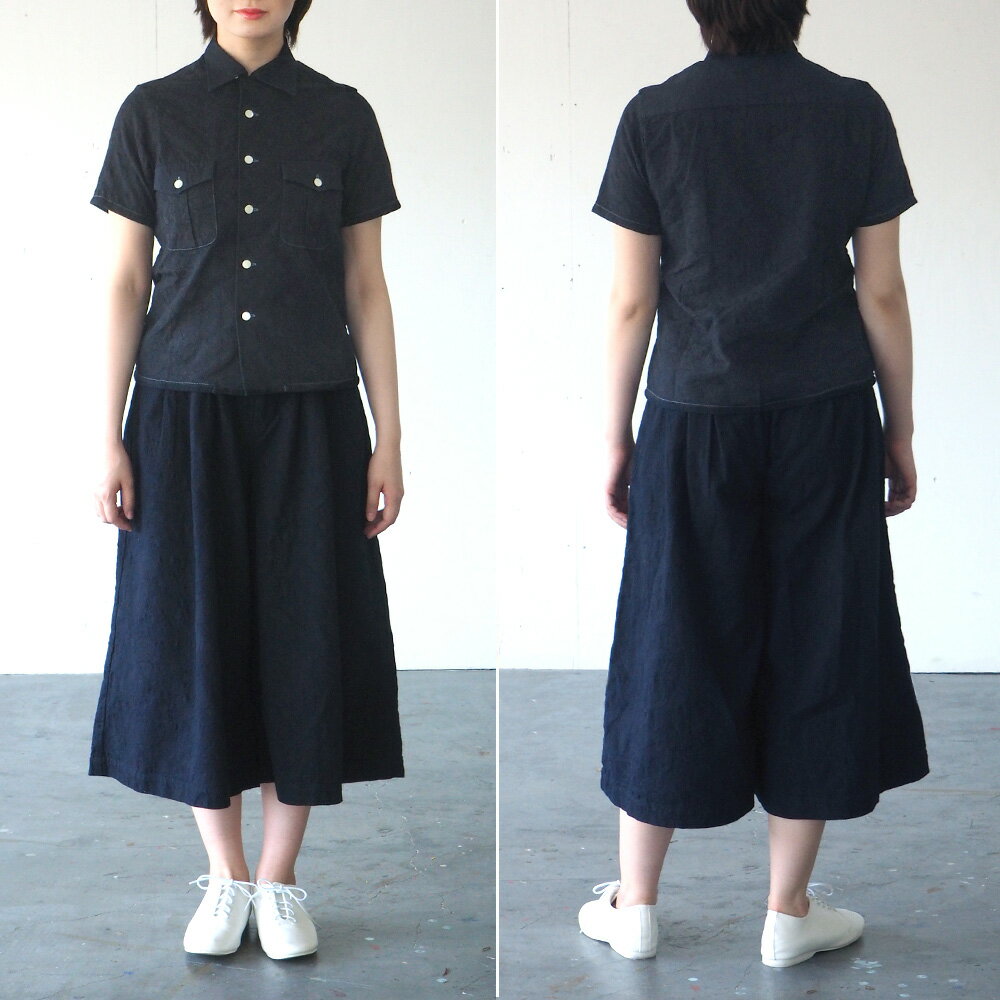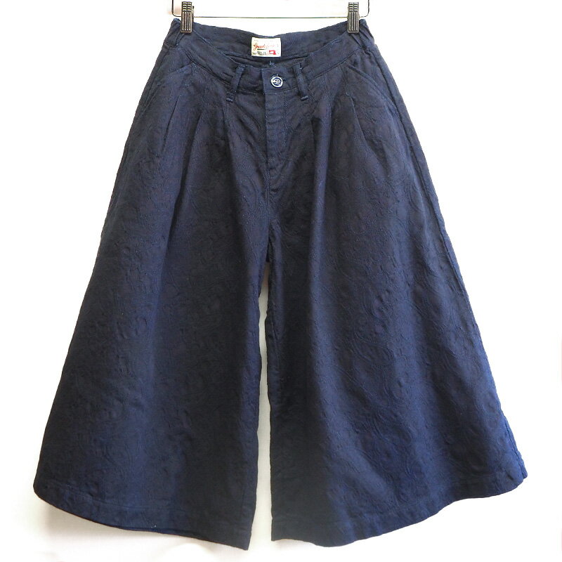 こちらは、よく見るとペイズリー柄が編み込まれたジャガード生地を使用したデニムガウチョパンツです。
